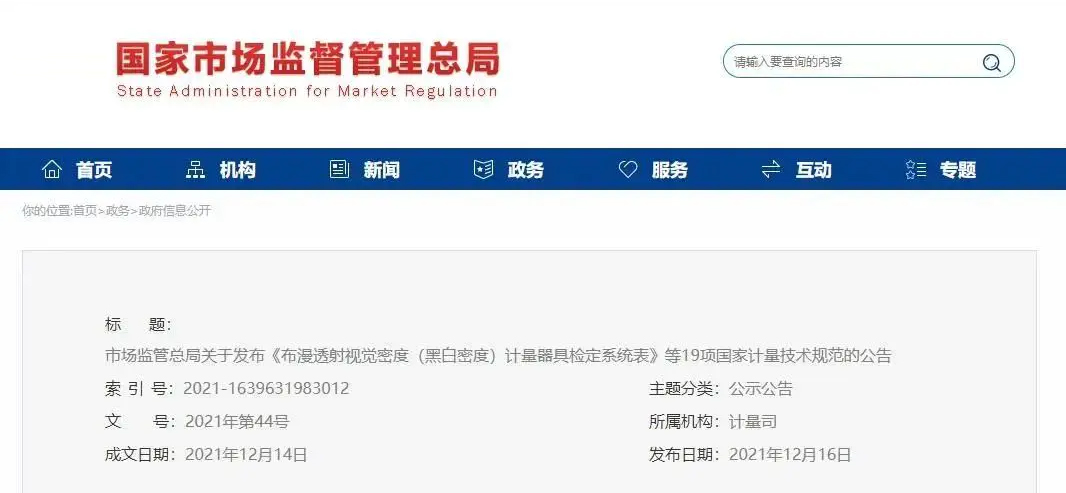 2021年12月14日,國家市場監(jiān)督管理總局發(fā)布實施《漫透射視覺密度(黑白密度)計量器具檢定系統(tǒng)表》等19項國家計量技術(shù)規(guī)范的公告,上海嘉鵬科技有限公司(簡稱“嘉鵬科技”)參編的《JJF1936-2021紫外分析儀校準(zhǔn)規(guī)范》在本次公告規(guī)范之列。