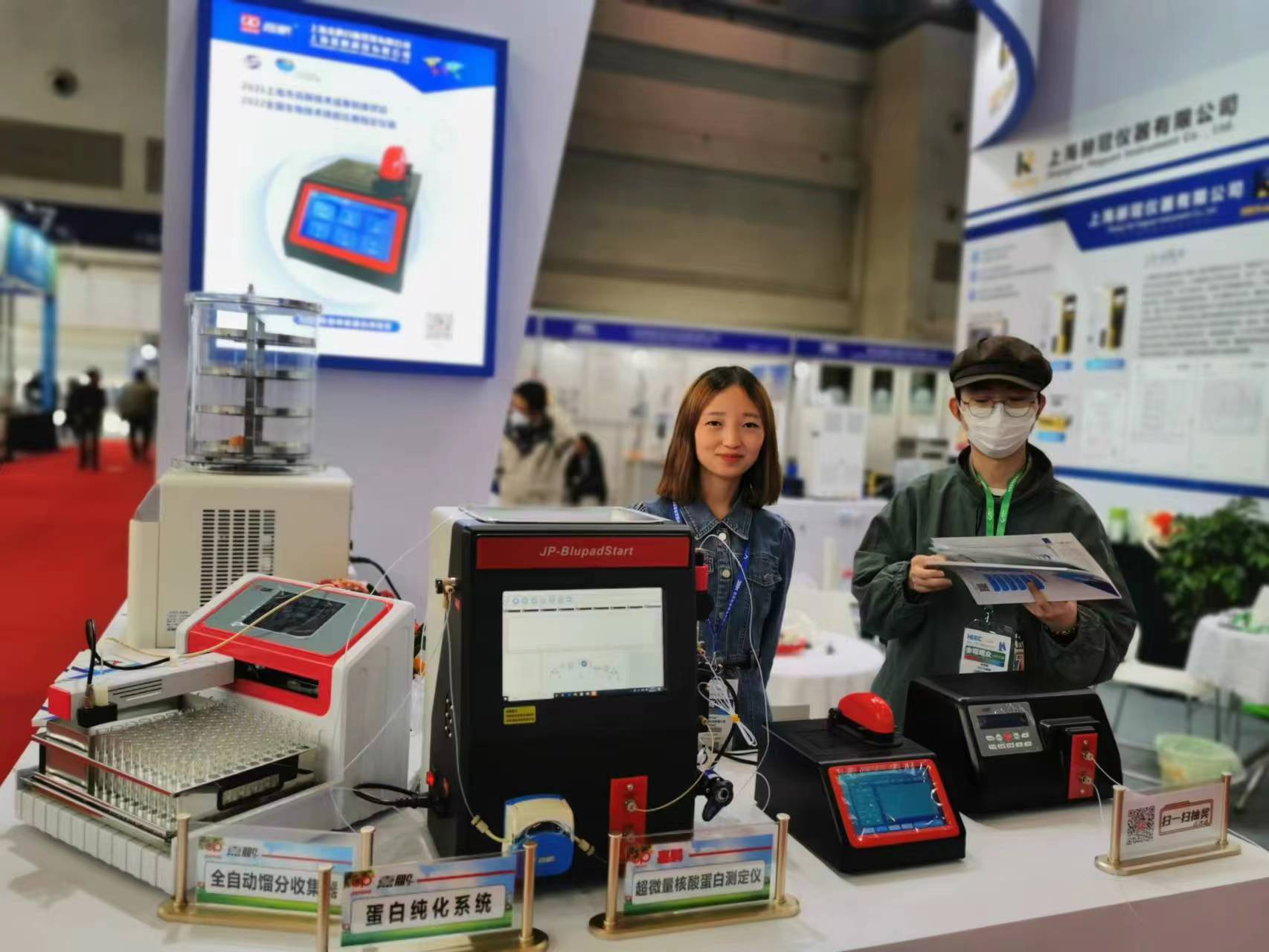 展位上,上海金鵬分析準(zhǔn)備了發(fā)明磚利的蛋白純化系統(tǒng)、國內(nèi)職業(yè)技能大賽指定儀器超微量分光光度計(jì)等儀器和介紹資料,吸引了眾多參觀者的關(guān)注。展品主要包括科蛋白質(zhì)純化系統(tǒng),超微量核酸蛋白測定儀,凝膠成像分析系統(tǒng),化學(xué)發(fā)光成像系統(tǒng),核酸蛋白檢測儀等,讓人們深入了解到了近年來分子生物學(xué)儀器的快速發(fā)展。